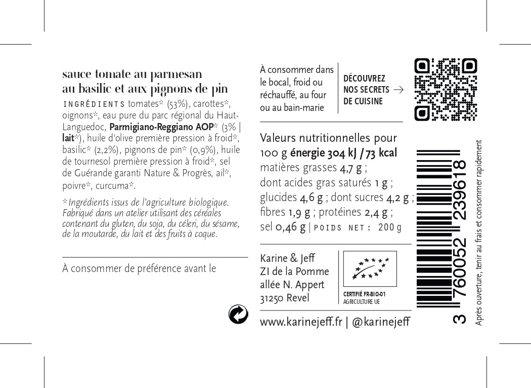 Sauce tomate au parmesan, au basilic et aux pignons de pin