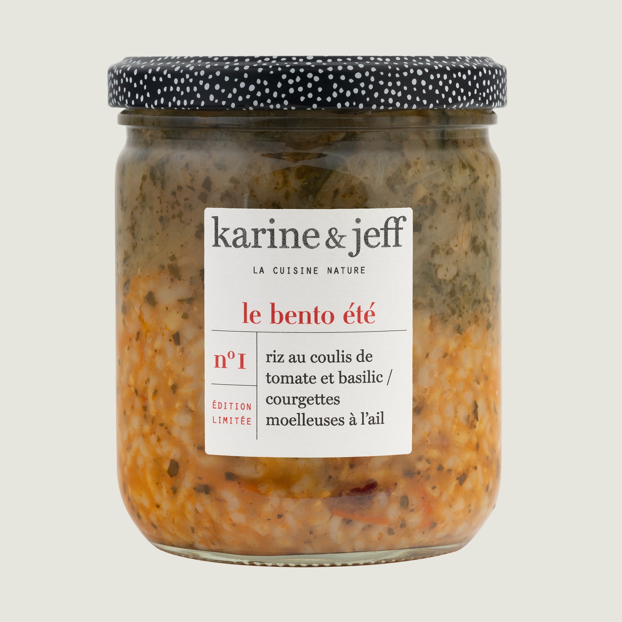 Riz au coulis de tomate et basilic / courgettes moelleuses à l’ail
