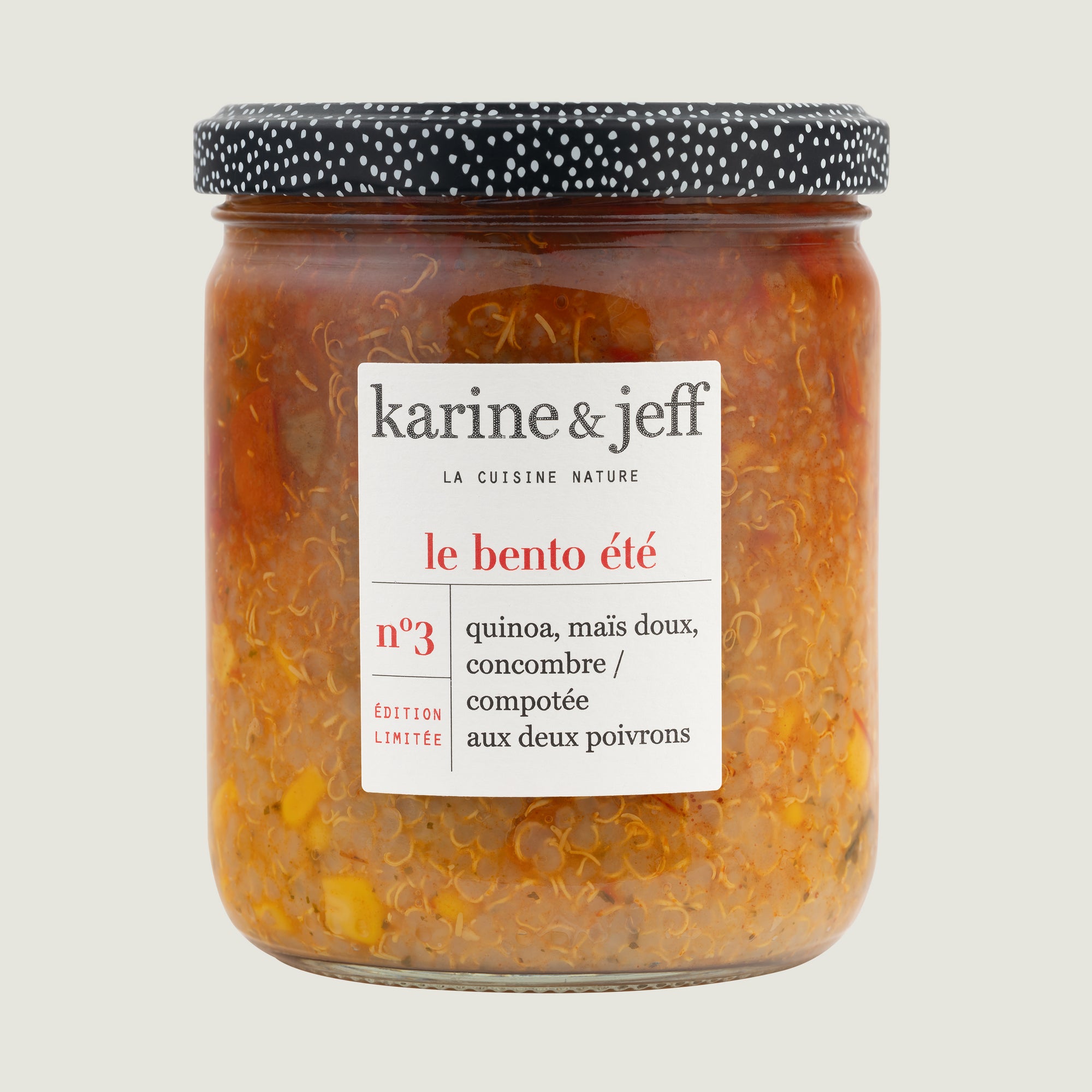 Quinoa, maïs doux, concombre / compotée aux deux poivrons
